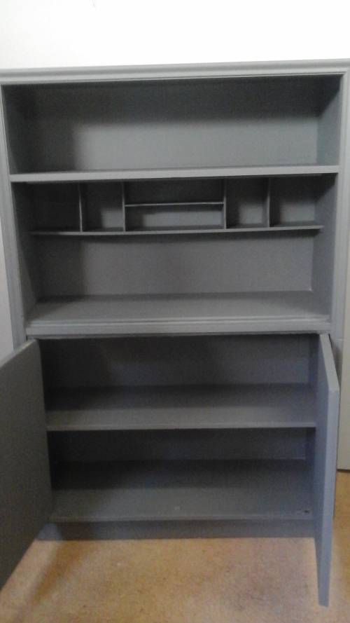 WOW!!!THIS EXQUISITE UNUSUAL PAINTED POSSIBLY KIAAT BUREAU, HAS FILING RACKS INSIDE AND A CUPBOARD.