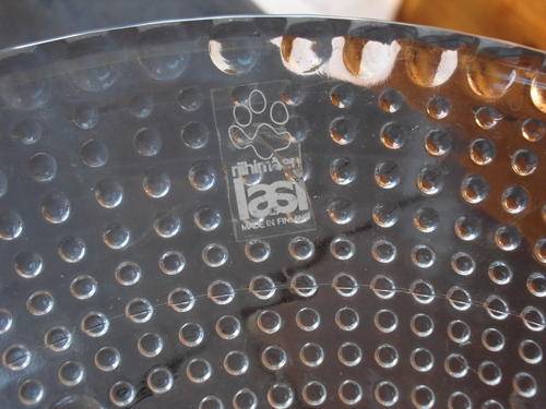 maker's sticker!. Made by Riihimaen Lasi OY which was formerly