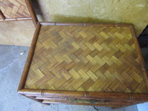 WOW - THIS IS DIFFERENT - TWO PEDESTALS AND TWO HEADBOARDS - WEAVED WITH GORGEOUS CANE BID PER ITEM - PERFECT FOR A HOLIDAY HOME BY THE OCEAN