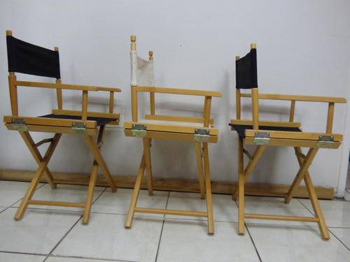 THREE VERY STYLISH AND CASUAL YELLOW WOOD DIRECTOR CHAIRS, THESE THREE CHAIRS WILL MAKE AN EXCELLENT ADDITION TO ANY CONTEMPORARY OR TRADITIONAL LOUNGE OR BAR DECOR.THEY STAND FIRMLY ON THE GROUND; NONE OF THEM ARE WONKY AT ALL! THE SIZE OF EACH CHAIR IS APPROXIMATELY 41cm x 53cm x 86cm HIGH.