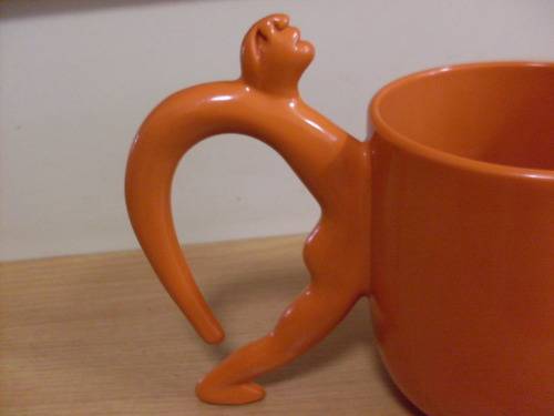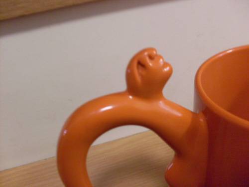 WOW....VERY RARE ORANGE ICE TEA JUG WITH MAN SHAPE FIGURE HANDLE BY CARROL BOYES