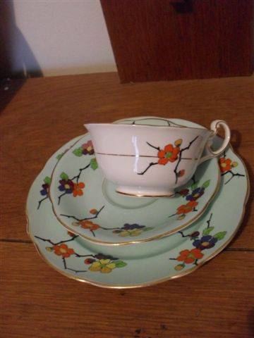 LOVELY FIND.........HAND PAINTED TRIO...FOLEY BONE CHINA ENGLAND...E.B. & CO...NO 627....