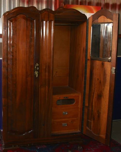 WOW WHAT A STYLISH IMBUIA 2 DOOR WARDROBE WITH ORNATE DETAIL AND CAMPHO WOOD INSIDE EXQUISITE