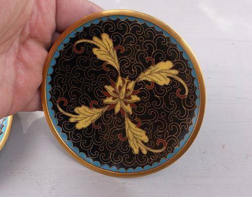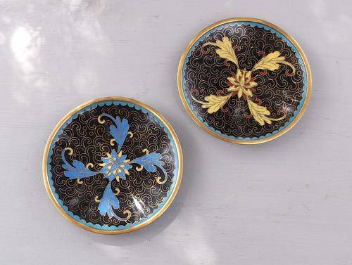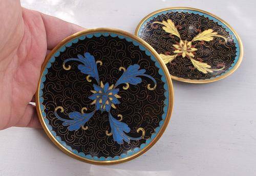 On offer are these two beautifully decorated vintage Chinese Cloisonne dishes