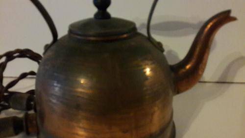 It is a very collectabile Welsh Tea Pot. Copper with brass and a very detailed ornate folding handle. Some dings and age related wear and tear that just adds to this exceptional piece.