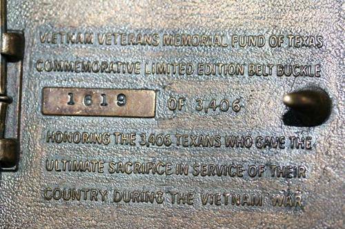 HOW MANY OF THESE WILL YOU FIND IN SOUTH AFRICA??? A STUNNING BELT BUCKLE (No 1619) HONOURING THE 3406 TEXANS WHO DIED DURING THE VIETNAM WAR!!! TOTALLY AWESOME.....