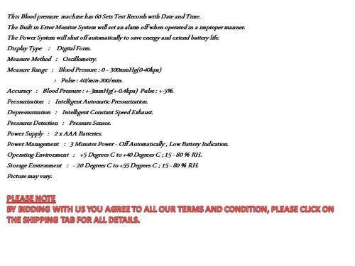 • Systolic, Diastolic, Pulse Rate, Memory, Year, Month, Date & Time