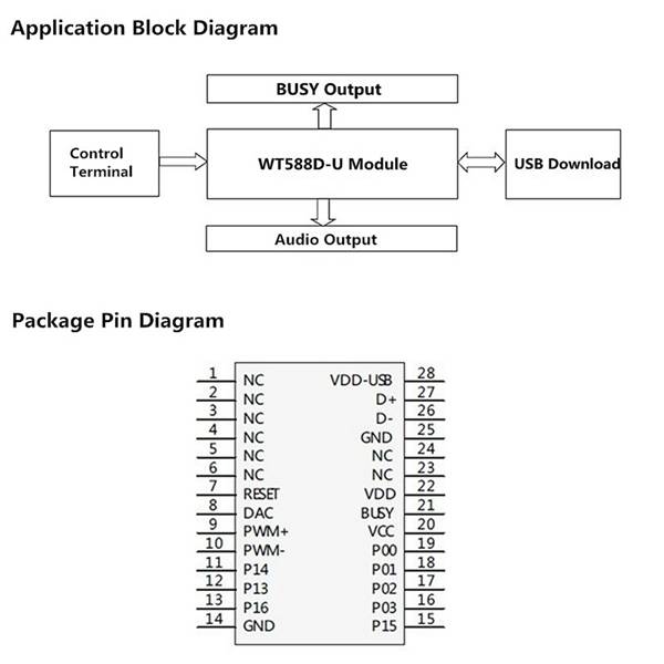Support online USB download/ offline USB download. Moreover, it also can download data to SPI-Flash even if WT588D-U are working