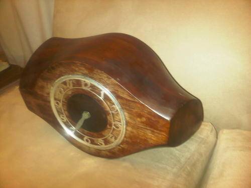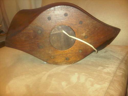 Wow this item was once the propellor for a fighter plane used during 1 of the World Wars and when the war was finished and the planes were dismantled and scrapped this propellor was taken and fashioned into a real AWESOME Mantle Clock. The weird mechanism is inside still and a wire comes out the back but has no plug so i am unsure of its working condition. The clock face does look like silver to me. This is an Excellent item for a house and a great conversation piece.