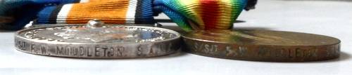 BRITISH WAR MEDAL AND VICTORY MEDAL (ENGLISH AND DUTCH) BOTH INSCRIBED - S/SJT F W MIDDLETON S A M C
