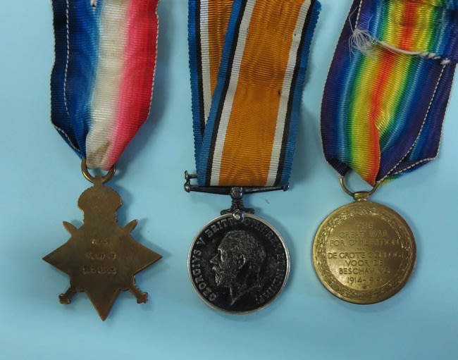 Medal group consists of the British War Medal 1914-1918, the Victory Medal, and the 1914-15 Star.