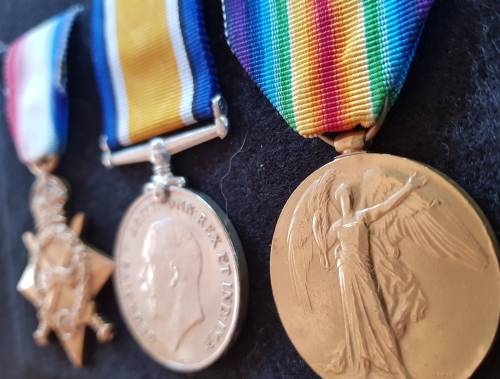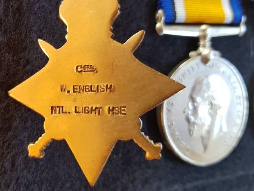 Full size WW1 Trio correctly named to W.English. STAR named to Cpl. W. English, WM/VM named to Sjt. W.English. English was part of the famous Natal Light Horse (NLH) raised by Colonel John Robinson Royston who pursued and engaged the German Forces around Gibeon station. English suffered a severe GSW to his right leg during the battle. Extensive research and index card included.No overseas bidders please.