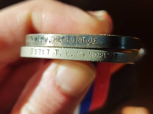 South African WW11 Pair - WM & ASM correctly named to T.W. M Nortje No. 39717. Only entitlement. Service papers included. No overseas bidders please.