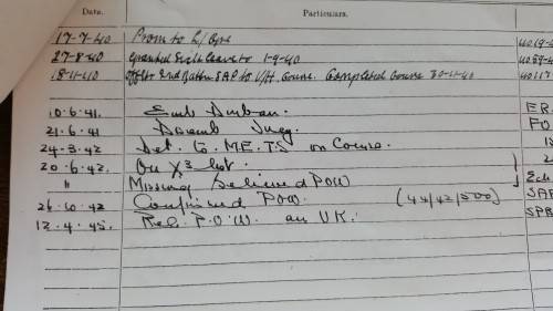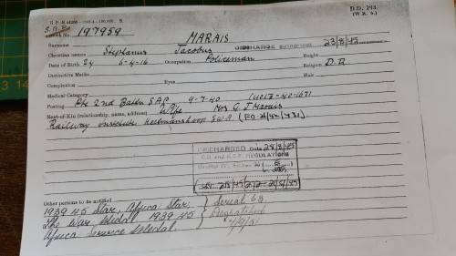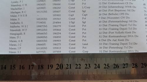 The above confirms his POW status (Terence King book). Marais's name just above the ruler.