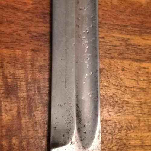 THE BLADE HAS SOME PITTING. THE RULER IS FOR SCALE ONLY.