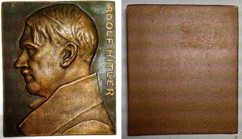 This plaque depicts a side view of Adolf Hitler, measures 70 x 60mm and is quite heavy for the size.