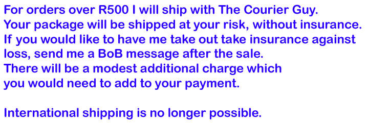 R35.00 Standard shipping using one of our trusted couriers applies to most areas in South Africa. Some areas may attract a R30.00 surcharge. This will be calculated at checkout if applicable. Check my rate
