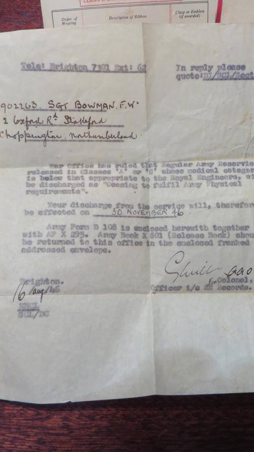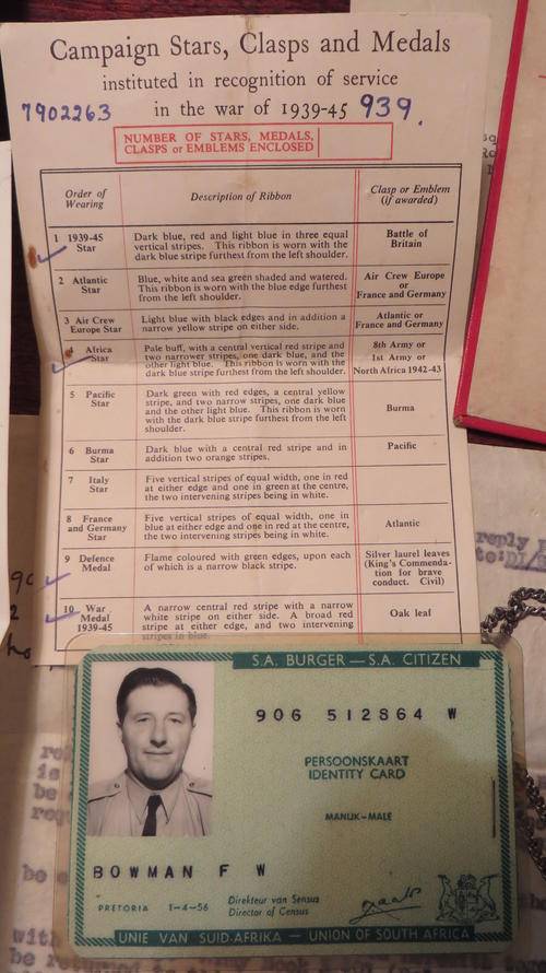 WW2 MEDAL GROUP and documents and letters - SERGEANT FREDRICK WILLIAM BOWMAN***