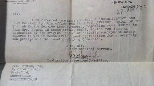 THE LETTERS ARE A FASINATING STORY OF HOW HE TRIED TO GET BACK TO S.A TO HIS WIFE BUT WAS NEVER ABLE TO BORED A SHIP BACK.