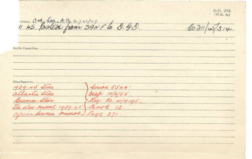 Card shows the confirmation of his medal group with Burma and Atlantic Stars - nice combination.