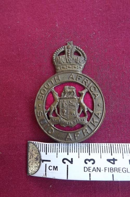WW2 South AFrican Army Instructional Corps Bronze Cap Badge on Red Felt - both lugs