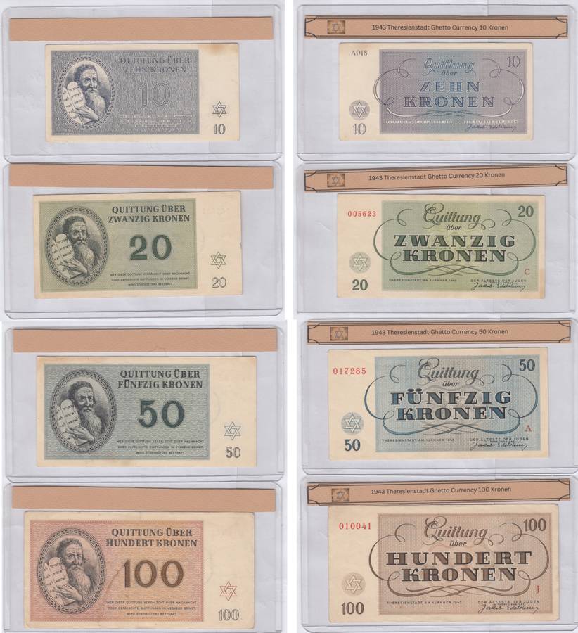 WW2 Theresienstadt 1943 Jewish Ghetto Currency Note Set