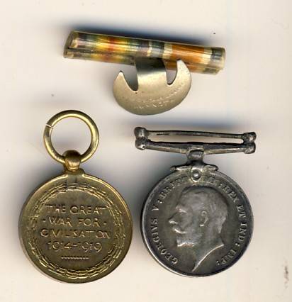 WWI Miniature set of medals - War medal & Victory - also button hole ribbon bar - as per scan