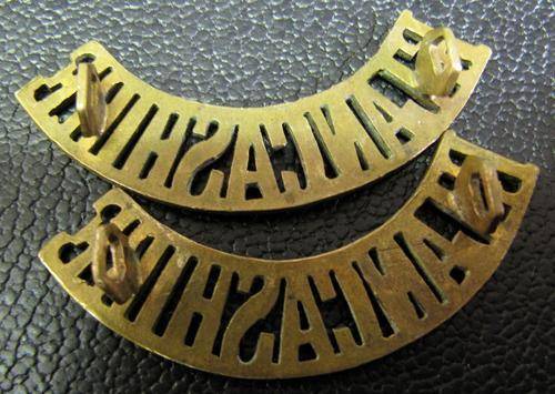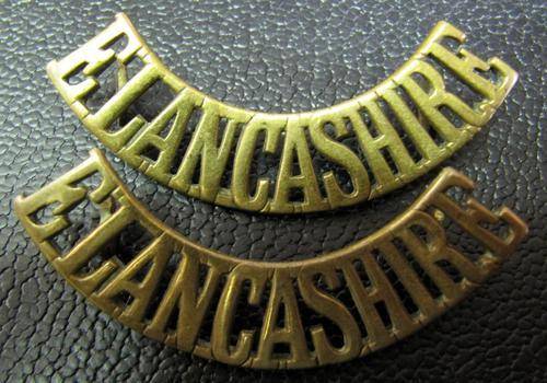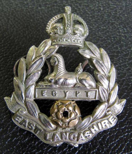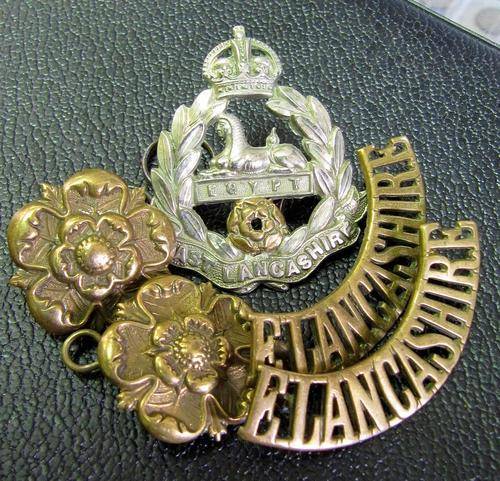WWI-WWII British Royal Military, East Lancashire Reg. Cap/Collar/Shoulder badges