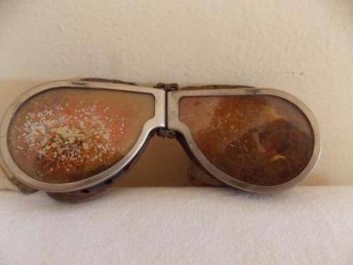 WWII FOLDING RESISTAL AMBER LENS LEATHER AVIATOR GOGGLES IN ORIGINAL CASE. CONDITION AS CAN BE SEEN FROM PHOTOGRAPHS. SHIPPING COSTS R50.00