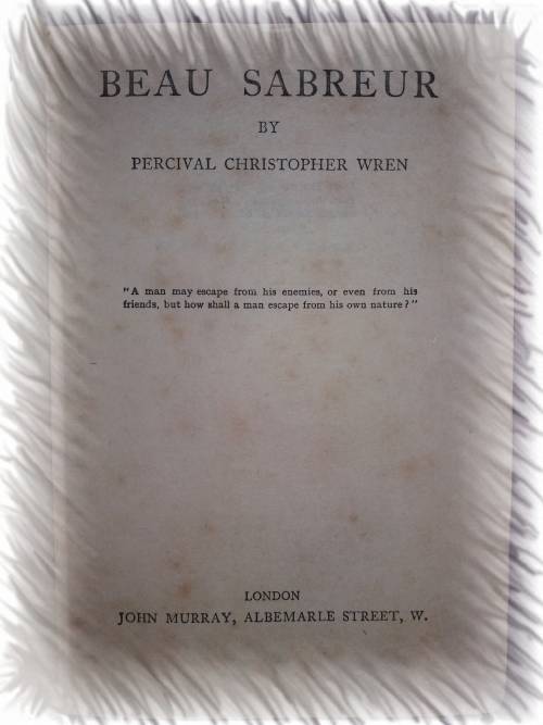 BEAU SABREUR with no dust cover, 342 pages, some wear and tear marks on top and bottom spine, expected spotting to interior, On the endpaper and next blank cover is inscription in pen - see photo.