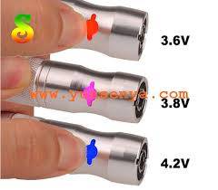 PRESS BUTTON AGAIN X 5 IT FLASHES BLUE = 4.2 VOLT