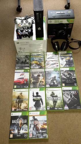 1x Steel Series XBOX 360 wireless headphones (Spectrum 7XB). Has retractable mic for convenience. Amazing sound.