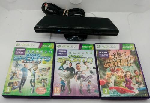 Comes with The Kinect sensor and three games (Kinect Sports Season Two, Kinect Sports, Kinect Adventures!)