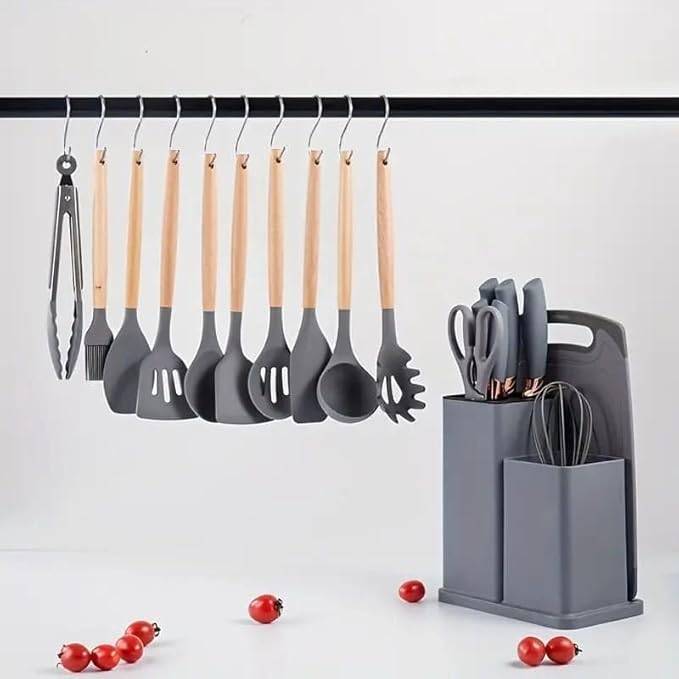 The set includes essentials like silicone spatulas, spoons, tongs, and a whisk, making it versatile enough to handle all your cooking tasks.