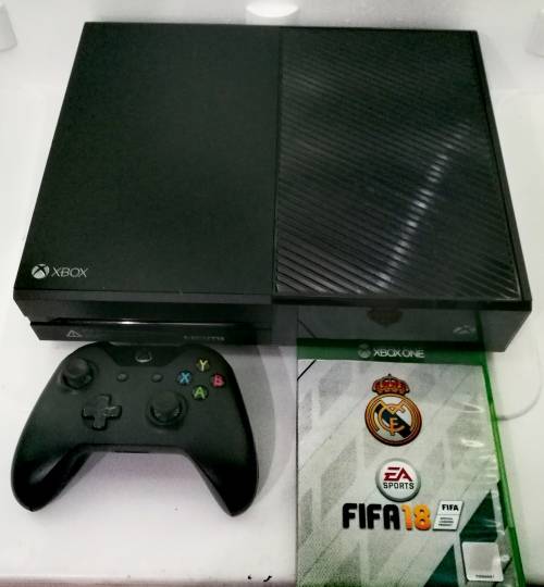 The console comes with 1 controller, all necessary cables and one game (Fifa 18).
