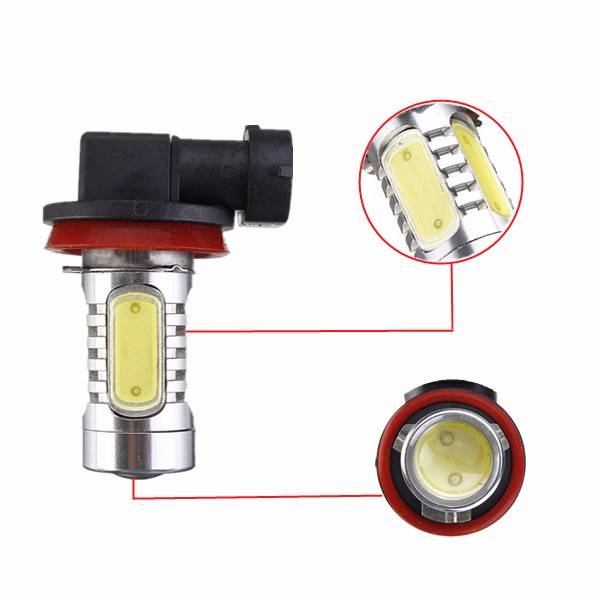 High Power 7.5W HID White H11 COB LED projector bulbs. Lifespan of LED light is 50000 working hour. Installation of LED light is fairly easy. Premium quality glass projector lens, which makes the light beam very focus and projects the light much farer than regular model. The 3 dimensional design of this item let it lights up front and all 4 sides. This kind of H11 LED bulbs will replace the stock fog lights 55W halogen bulbs to give you a nice 6000K HID look without paying the price for the HID Conversion Kit.