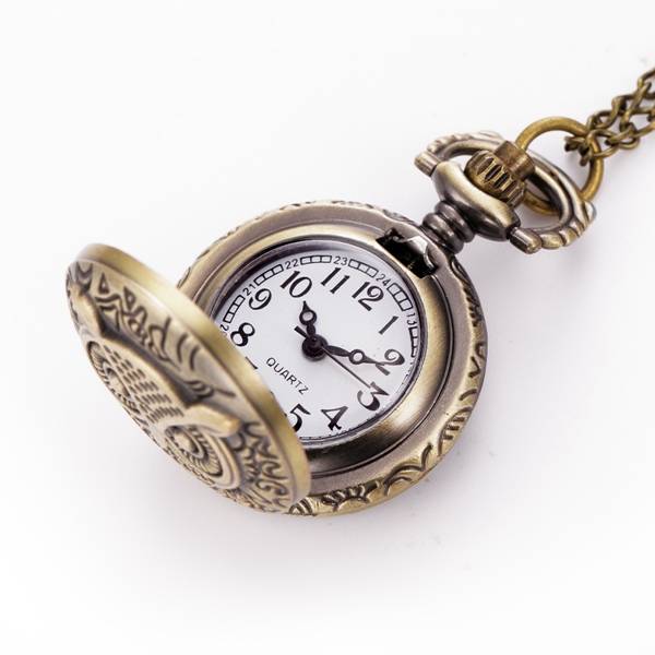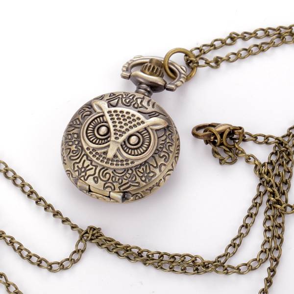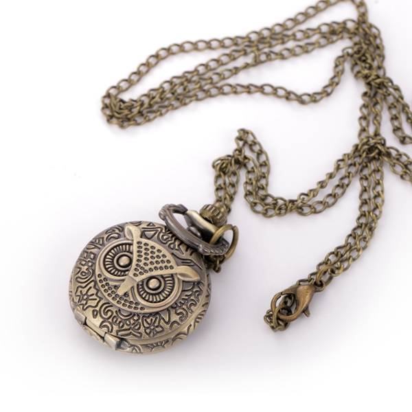 XHB02 Fashion Bronze Pocket Watch Owl Pattern Necklace Vintage Chain Quartz Watch