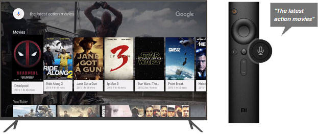 Finally, a TV that listens. All you have to do is ask. Speak into the voice remote control and Mi Box searches for what you want.