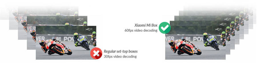 A powerful video decoder is like having a high performance processor. Mi Box can handle up to 60 frames per second - that's double what other set-top boxes can do. It's an advantage you'll notice naturally when you watch NBA live or play a racing game.l