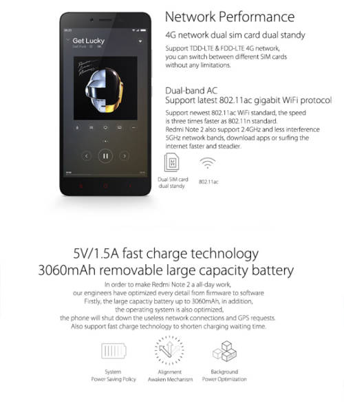 XIAOMI RedMi Note 2 (Advanced Edition) Android 5.0 4G Phablet with 5.5 inch FHD Screen MTK Helio X10 64bit 2.2GHz Octa Core 2GB RAM 32GB ROM 5MP + 13MP Cameras