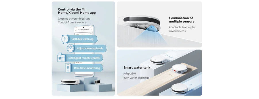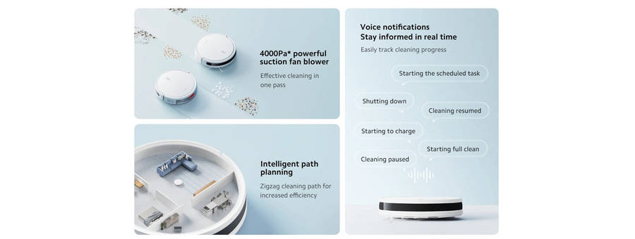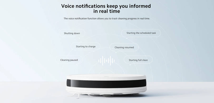 App Control and Voice Notifications: Connect to the Mi Home/Xiaomi Home app for easy operation, even when you're away from home. Track the cleaning progress in real-time and enjoy voice notifications for added convenience.