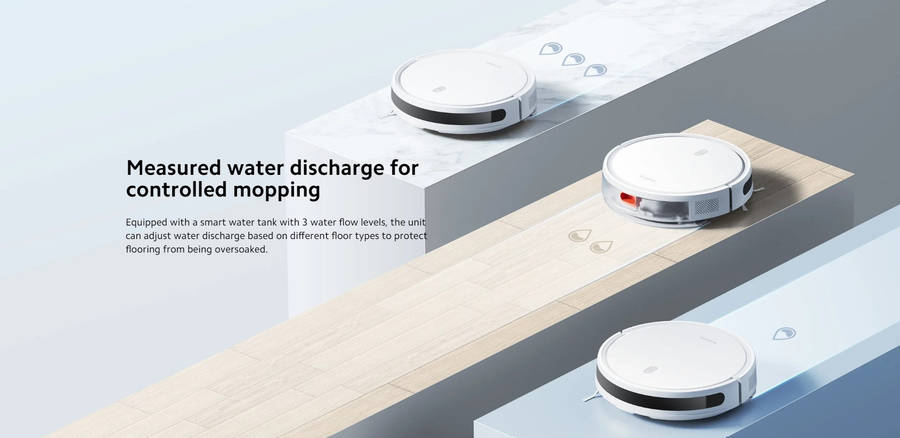 Smart Water Tank: The smart water tank features three water flow levels, allowing the Xiaomi E10 to adjust the water discharge according to the floor type. Say goodbye to oversoaked floors and achieve perfect mopping results.
