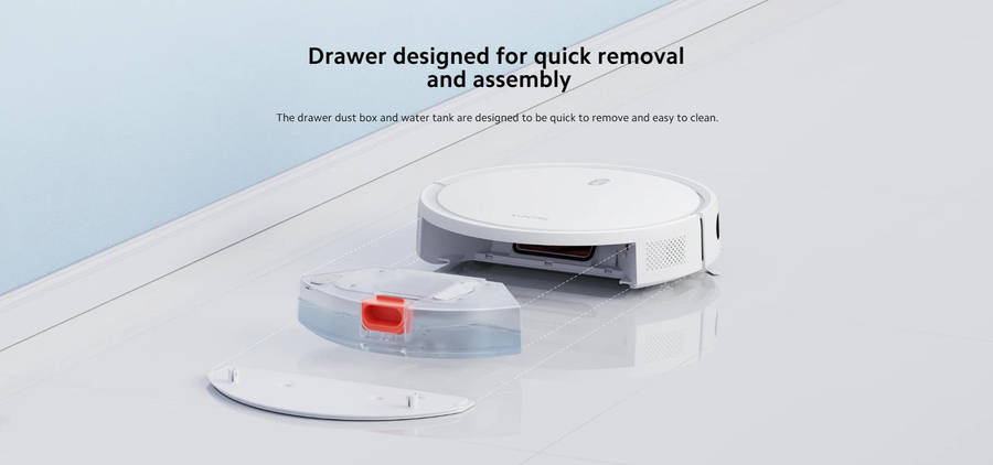 Easy Maintenance: The drawer dust box and water tank are designed for quick and easy removal, making cleaning them a breeze. Keep your Xiaomi E10 in top-notch condition effortlessly.