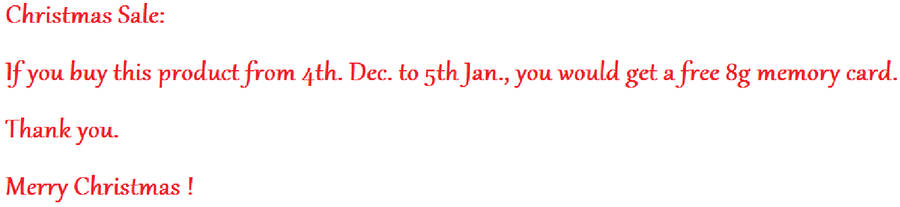 8.Memory Card Capacity: Support TF Memory Card 512MB-32GB