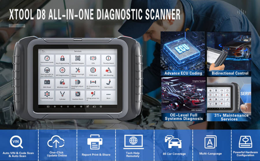 The XTool D8 Professional Diagnostic Scan Tool is the latest diagnostic tablet designed for auto repair shops and technicians. D8 features advanced ECU Coding, Bi-Directional Control, OE level all systems diagnostics with Auto VIN/VIN scan/Auto Scan technology, extensive vehicle coverage of 88+ US, Asian and European car brands, including CAN FD protocol vehicles (for 2020+ GM)