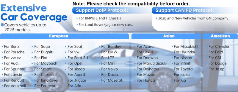 Note: Topology Map compatibility with GM, CHRYSLER, JEEP, DODGE, FORD, TOYOTA, NISSAN, HONDA, BMW, BENZ, HYUNDAI, MAZDA (MORE COMING SOON). Not all vehicle makes and models are supported.
