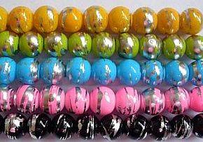 100x Opaque Glass Beads/Silver Swirls 6mm,8mm,10mm