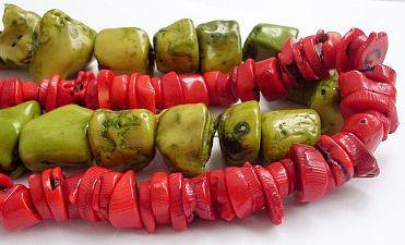 8x Large Green Coral free Form Nuggets - 20x (10-12mm) Red Coral Free Form Rounds