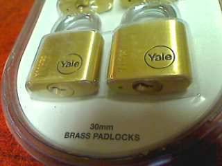 Yale 30mm Brass Keyed Alike 4 Piece Padlok Set x 2