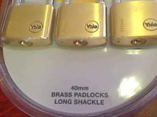 Yale 40mm Long Shackle Brass Keyed Alike Padlocks (3 Pack)